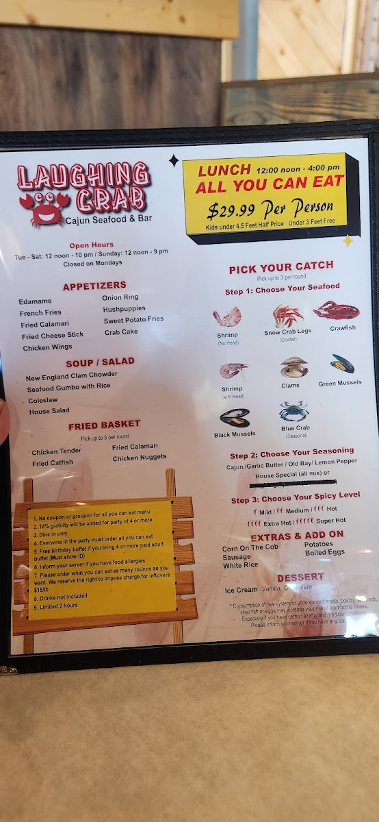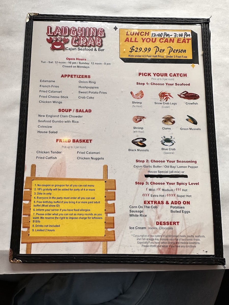Introducing the Menu at Laughing Crab Cajun Seafood